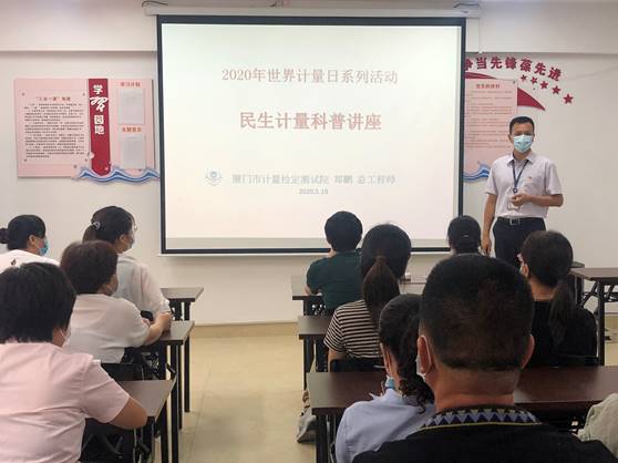 5月19日上午,“5•20世界计量日”来临之际,市市场监管局机关党委副书记陈震洲,计量处党支部书记、处长吴国良,副处长李毅龙,市计量院党支部委员、总工程师郑鹏,副院长杨桦等同志带领市市场监管局、市计量院、市衡检站志愿者来到天湖社区,与天湖社区党委联合举办“计量进社区 做您好邻居”党建共建志愿服务暨 “深化大学习 提振精气神”专项活动。 市市场监管局计量处吴国良处长、李毅龙副处长结合市场上常见的电子计价秤作弊方法,为市民现场演示了防作弊小妙招及投诉举证注意事项等。市计量院郑鹏总工程师为社区居民带来了精心准备的计量科普讲座,介绍了计量的起源,计量的作用,世界计量日的由来,以及2020年世界计量日主题“测量支撑全球贸易”和中国特别主题“计量精准战‘疫’、助力复工复产”,同时介绍血压计、体温计、水表、电能表、燃气表、电子计价秤等与百姓生活息息相关的计量器具相关知识,包括正确使用血压计、体温计注意事项等。市计量院及市衡检站的民生计量检测志愿者为社区居民免费检测了血压计、体重秤、手持弹簧秤等生活中常用的计量器具,对于现场无法检测的体温计,志愿者逐一登记,带回实验室检测完后再交由社区发放给送检社区居民。共有50余名社区居民参加了活动,现场检测计量器具12台,登记带回体温计6支。 最后,市市场监管局机关党委、天湖社区党委、市计量院党支部举行座谈,大家围绕习近平总书记重要指示“人民对美好生活的向往,就是我们的奋斗目标”结合各自工作介绍经验做法,将“深化大学习 提振精气神”专项活动引向深入。 撰稿:市计量院陈炯宇 计量处随政 2020年5月19日